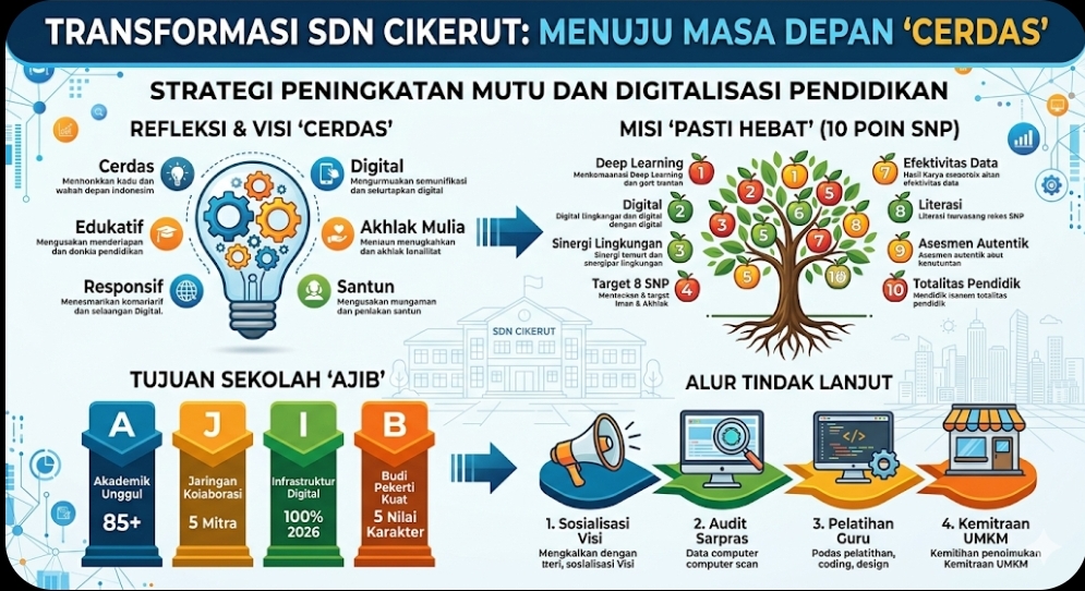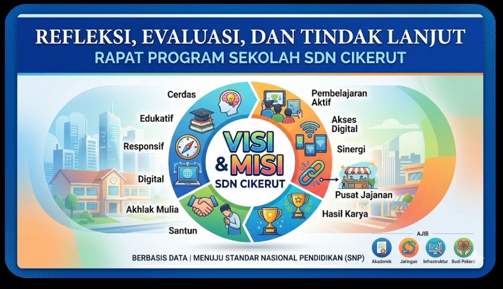 CILEGON – Dalam upaya meningkatkan mutu pendidikan yang relevan dengan perkembangan zaman, SDN Cikerut secara resmi merilis kerangka strategis baru yang mencakup Visi, Misi, dan Tujuan Sekolah. Melalui forum rapat program kerja yang melibatkan seluruh pemangku kepentingan, sekolah menetapkan langkah besar menuju digitalisasi pendidikan tanpa meninggalkan akar karakter bangsa.